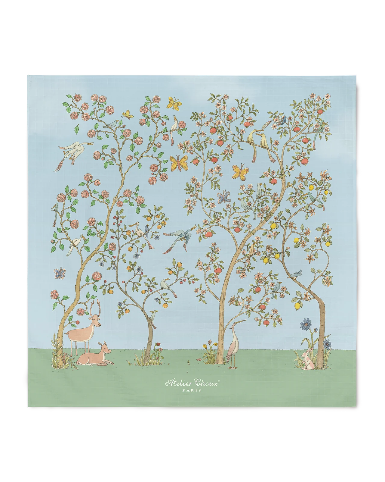 „In Bloom Blue“ verbindet florale Leichtigkeit mit einer frischen, sanften Farbwelt in Blau- und Grüntönen. Die detailreichen Blüten und feinen Illustrationen schaffen eine harmonische, ruhige Atmosphäre. Gefertigt aus hochwertiger Baumwolle, ist das Carré ein praktischer Alltagsbegleiter und zugleich ein stilvolles Accessoire. Perfekt als Geschenk oder als liebevolles Detail im Babyzimmer – elegant, zeitlos und vielseitig.