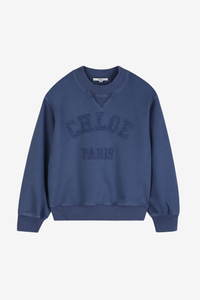Klassisches Sweatshirt von Chloé für Kinder in zeitlosem Blau. Das weiche Material sorgt für hohen Tragekomfort, während der dezente „Chloé Paris“-Logo-Schriftzug auf der Vorderseite dem Design eine elegante Designer-Note verleiht. Ein vielseitiges Basic für Alltag und Freizeit.
