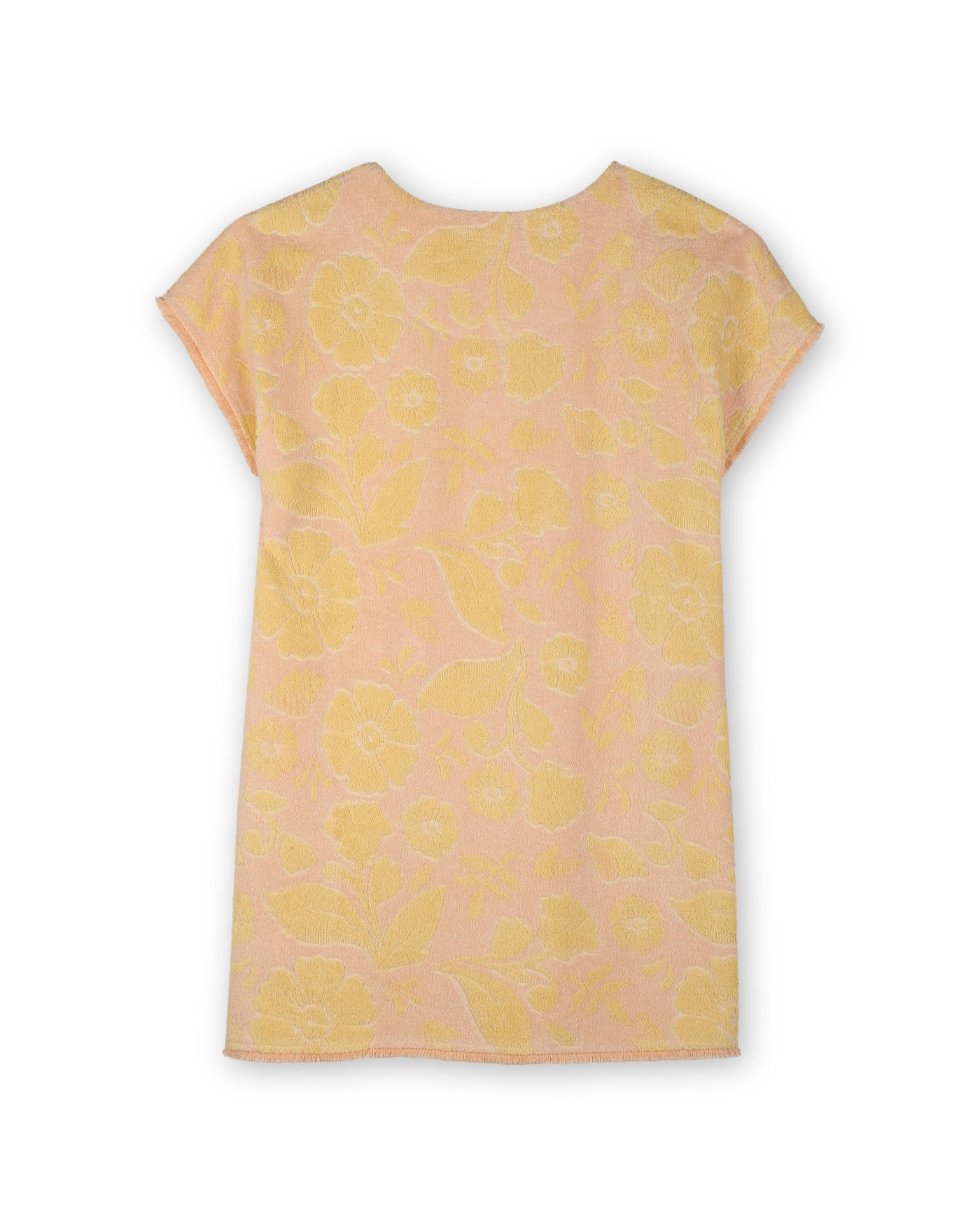 Sommerliches Frottee-Kleid von Chloé für Mädchen in warmem Gelb mit floralem Muster. Das weiche Material sorgt für hohen Tragekomfort, während der dezente Chloé-Logo-Schriftzug auf der Vorderseite dem Design eine elegante Note verleiht. Perfekt für warme Tage und entspannte Sommerlooks.
