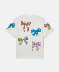 Dieses weiße T-Shirt von Stella McCartney Kids ist mit einem fröhlichen Allover-Print bunter Schleifen verziert. Das verspielte Design bringt Farbe in den Alltag und macht das Shirt zu einem echten Hingucker. Aus weicher Baumwolle gefertigt, bietet es zudem einen hohen Tragekomfort.