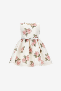 Kleid aus Brokat mit Rosen - weiss rosa / 12m