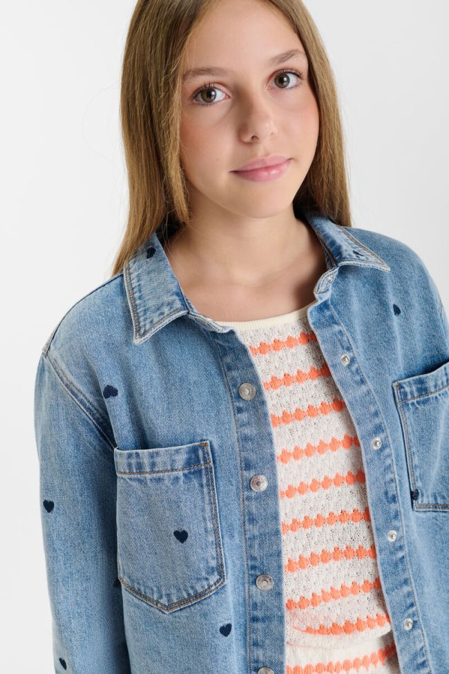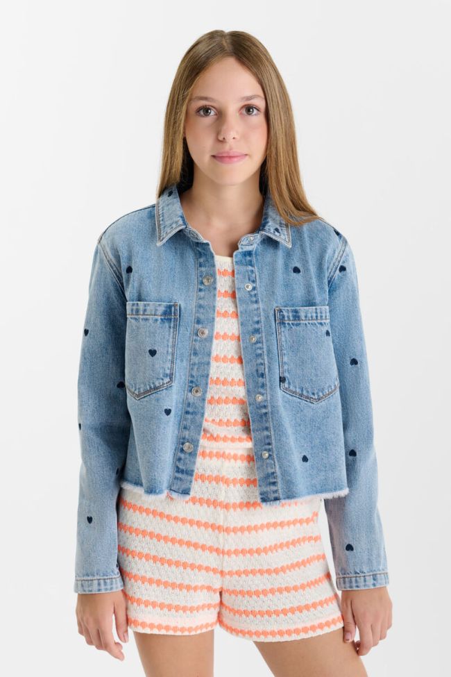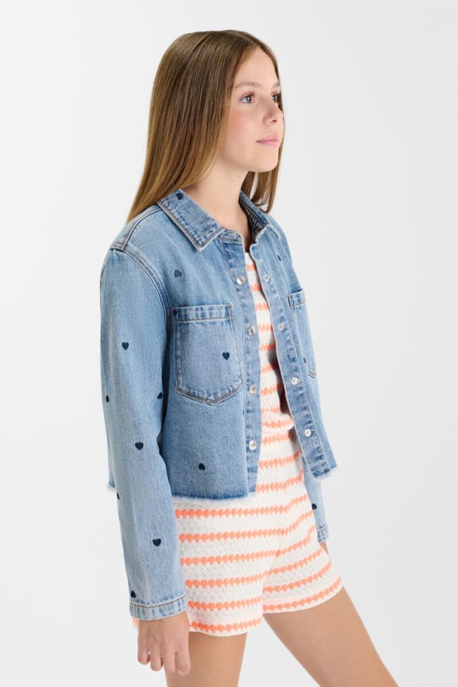 Heart Embroidered Denim Jacket - 16 / denim blue